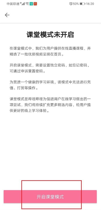第三步进去之后,可以看到课堂模式的介绍,点击开启课堂模式,如下图所示: