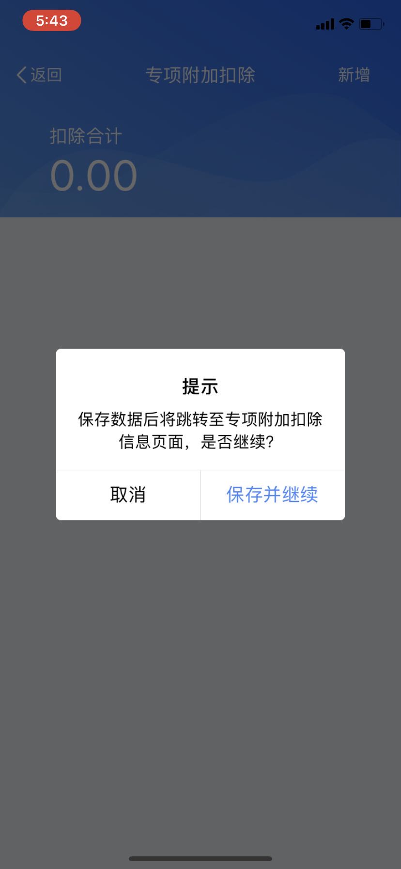 如果纳税人有可享受的专项附加扣除,可以进行新增。页面会有提示保存当前年度汇算数据,跳转专项附加扣除采集功能进行新增。