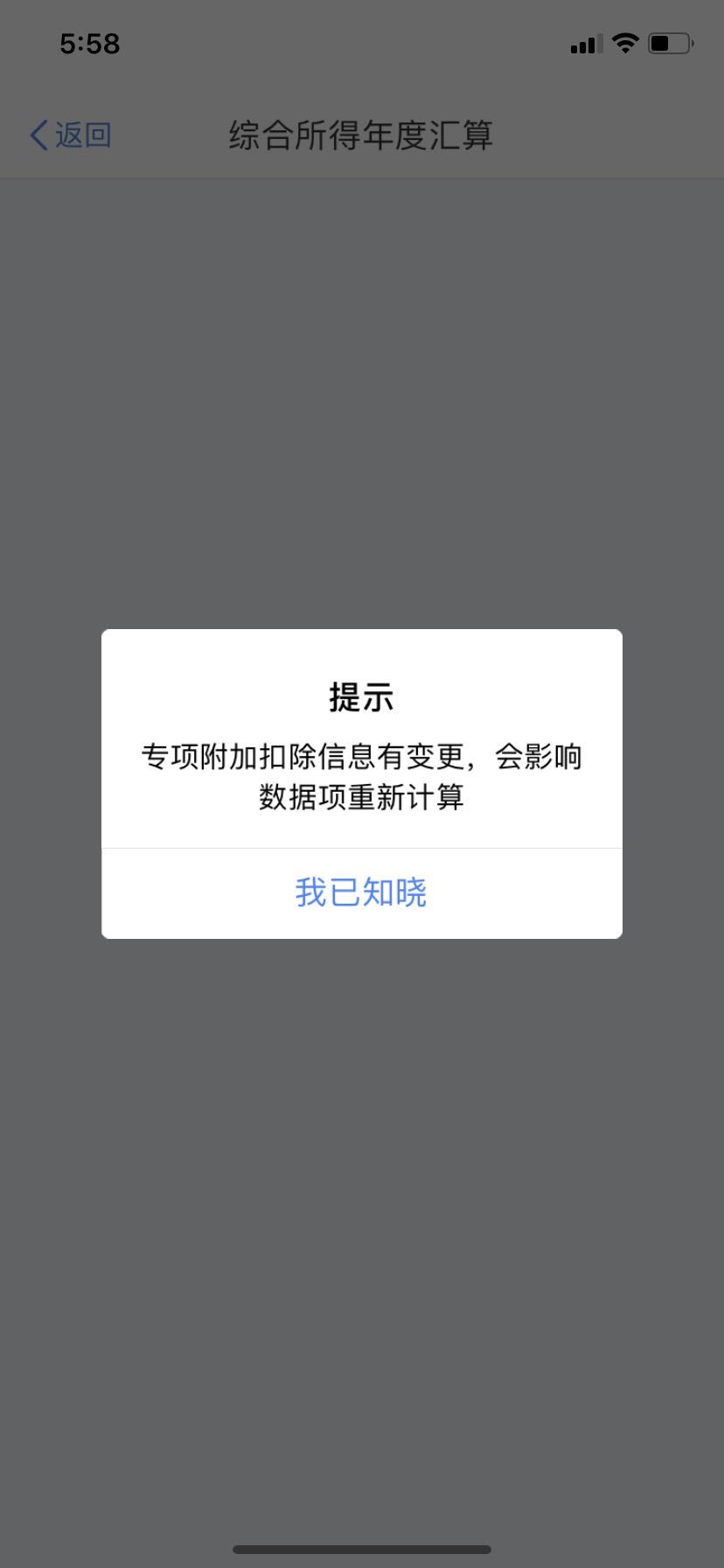 页面提示:“专项附加扣除信息有变更,会影响数据项重新计算。”