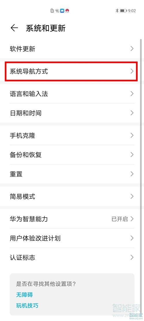 3、在系统页面下点击进入【系统导航方式】。