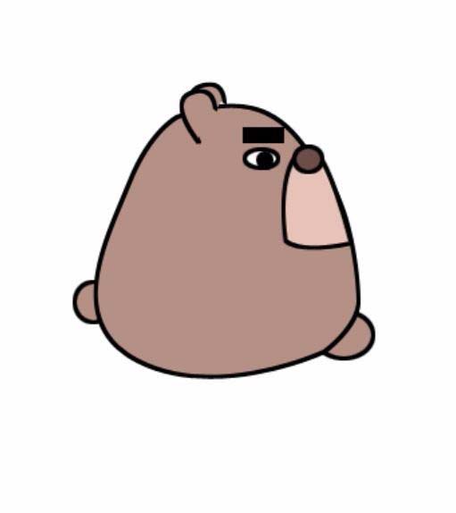 4、我们继续绘制出钓鱼熊的鼻腔,上面为深色的鼻腔头,下面为浅色的鼻腔。