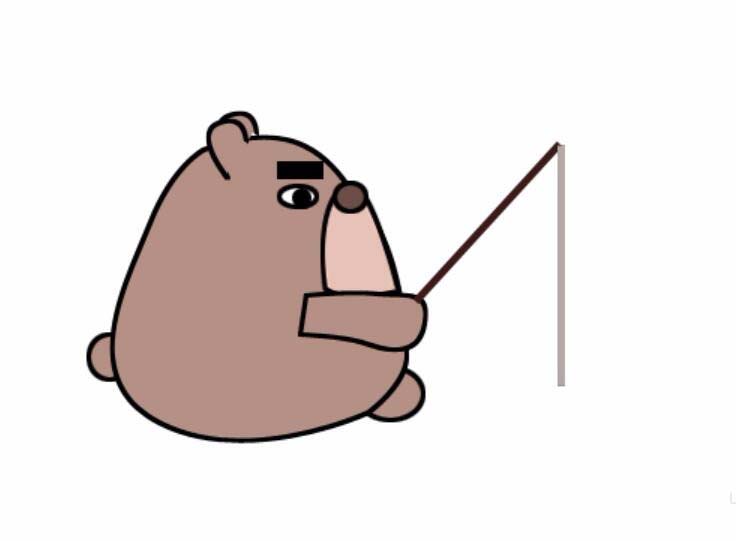 5、接下来,我们继续绘制出钓鱼熊的手与钓鱼杆,这个钓鱼熊的形象就更接近完成了!