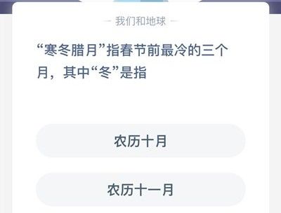 问题2:“寒冬腊月”指春节前最冷的三个月,其中“冬”是指?
