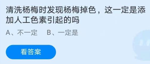 问题2:清洗杨梅时发现杨梅掉色,这一定是添加人工色素引起的吗?