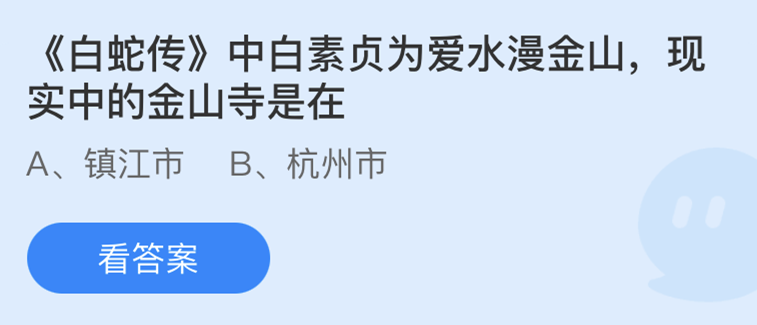 问题1:白蛇传中白素贞为爱水漫金山,现实中的金山寺是在?