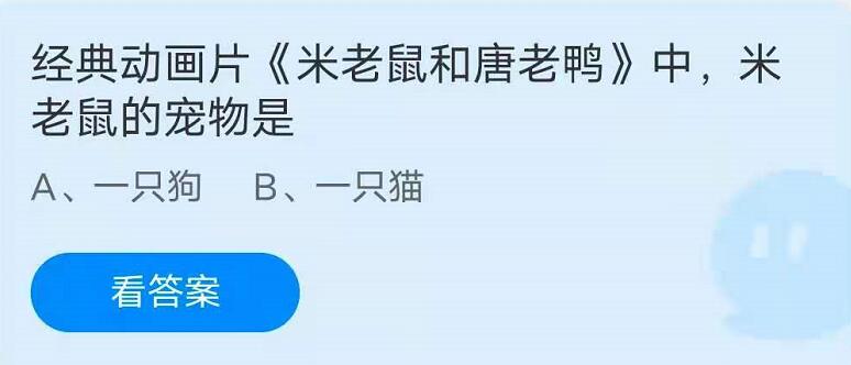 问题2:经典动画片《米老鼠和唐老鸭》中,米老鼠的宠物是?