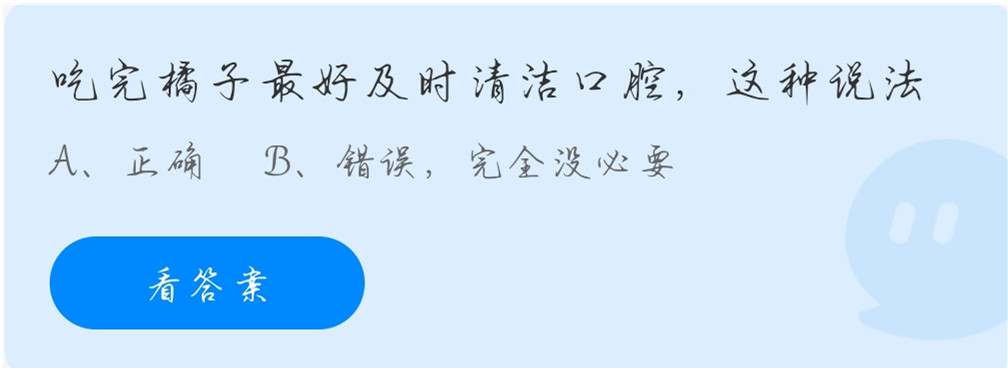 问题1:吃完橘子最好及时清洁口腔,这种说法?