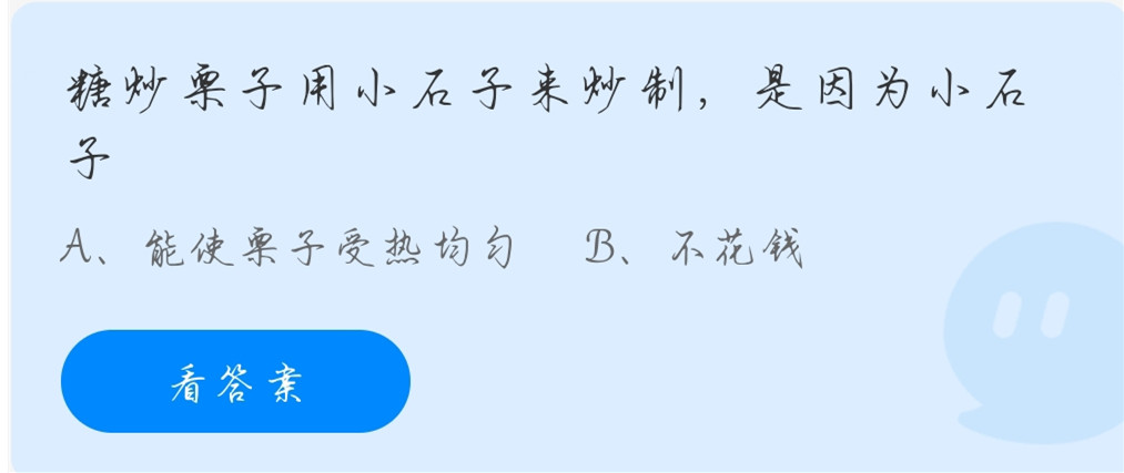 蚂蚁庄园11月13日的问题分别是:吃完橘子最好及时清洁口腔,这种说法?糖炒栗子用小石子来炒制,是因为小石子?下面昊普教程小编给大家带来问题的解答,一起看吧。