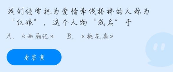 问题2:我们经常把为爱情牵线搭桥的人称为“红娘”,这个人物“成名”于?
