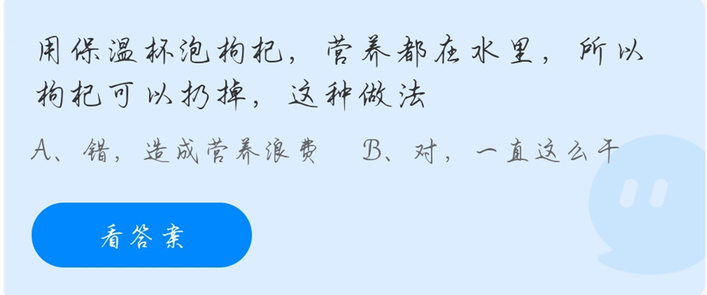 问题1:用保温杯泡枸杞营养都在水里所以枸杞可以扔掉这种做法?