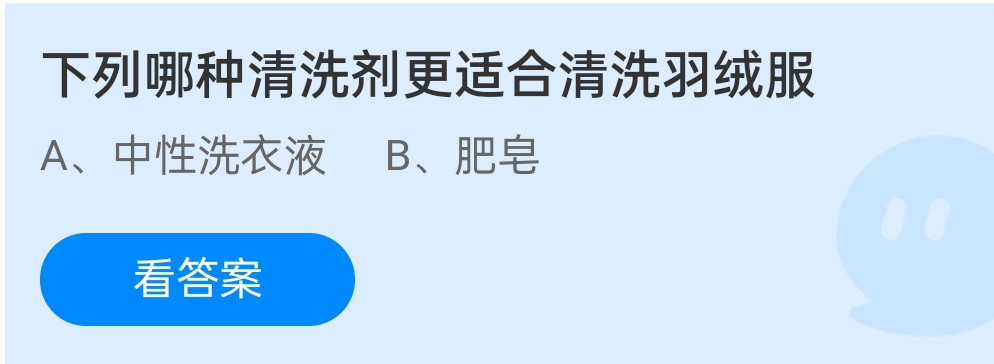 蚂蚁庄园12月22日的问题分别是:下列哪种清洗剂更适合清洗羽绒服?羽绒服不仅轻便,相对棉布等材质来说也较为保暖。这是因为?下面昊普教程小编就为大家带来问题的解答,快来一起看看吧。