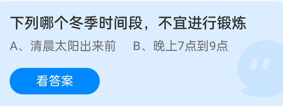 问题1:下列哪个冬季时间段不宜进行锻炼?