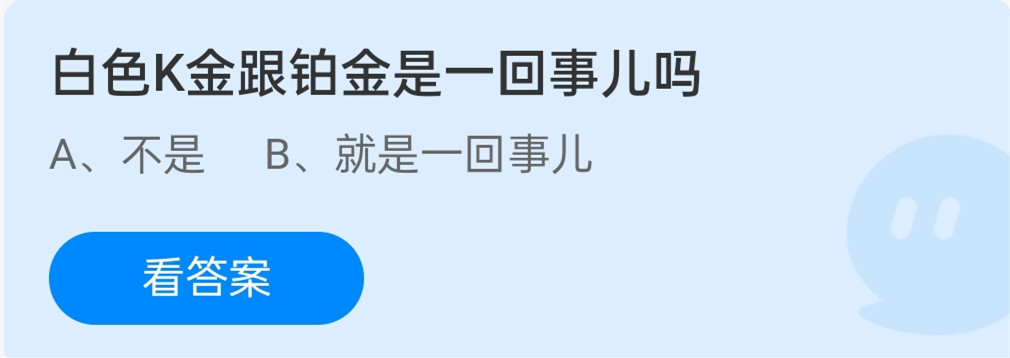 蚂蚁庄园12月31日的问题分别是:白色K金跟铂金是一回事儿吗?在加湿器里加消毒剂的做法?下面昊普教程小编就为大家带来问题的解答,快来一起看看吧。