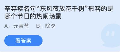 问题1:辛弃疾名句“东风夜放花千树”形容的是哪个节日的热闹场景?