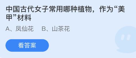 3月2日蚂蚁庄园的小问题分别是:中国古代女子常用哪种植物,作为“美甲”材料?“云想衣裳花想容,春风拂槛露华浓”写的四大美女中的哪一位?许多小伙伴还不知道问题答案,今天昊普教程小编就为大家带来了这次的问题答案,希望能够帮助到大家。
