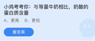 4月29日蚂蚁庄园的小问题分别是:与等量牛奶相比,奶酪的蛋白质含量?棕色的小熊猫,是大熊猫的宝宝吗?相信很多小伙伴还不知道问题的答案,那么今天昊普教程小编就为大家带来了这次的问题答案,一起来看看吧。