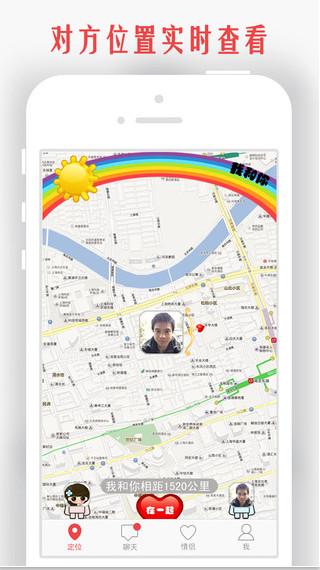我和你app是专为情侣约会设计的手机定位软件,也是全球首款支持到达/离开位置范围提醒的情侣软件。情侣手机定位软件是一款手机定位的软件,在情侣手机定位软件中用户可以极为方便的进行手机定位哦,方便情侣间快速的了解对方的位置。