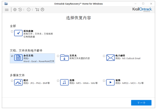 打开EasyRecovery个人版,首选选择要恢复的内容,如下图所示。