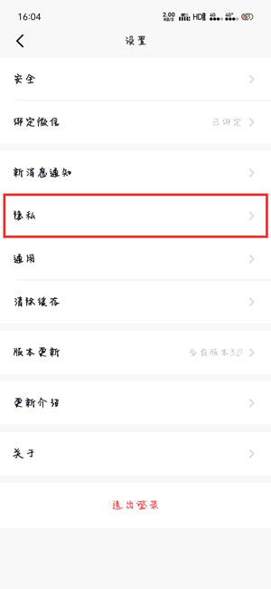 2.在默往设置找到【隐私】一项,进入设置账号隐私;