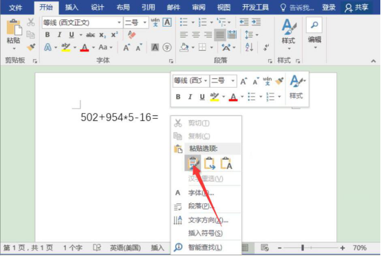6.右键单击需要显示统计数据的位置,并在右键菜单中点击“粘贴选项”的第一个选项。