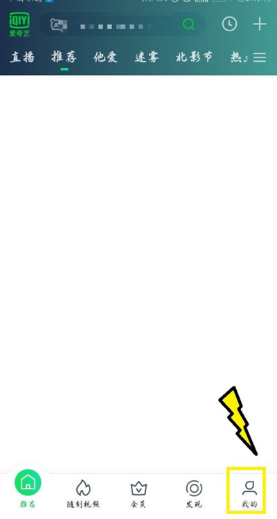 1、打开手机中的爱奇艺app,在下方的功能栏中点击右侧的【我的】;