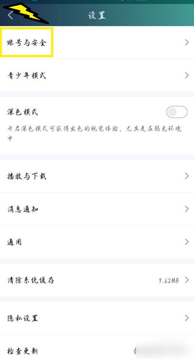 3、然后在设置中选择【账号和安全】设置;