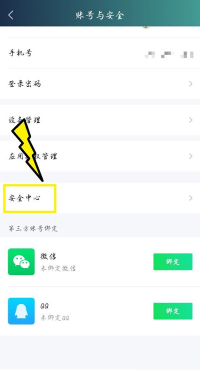 4、接着再选择【安全中心】设置;