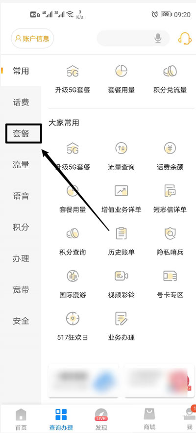 3、在套餐内,找到【已订业务】功能,点击进入查看所有已定业务;