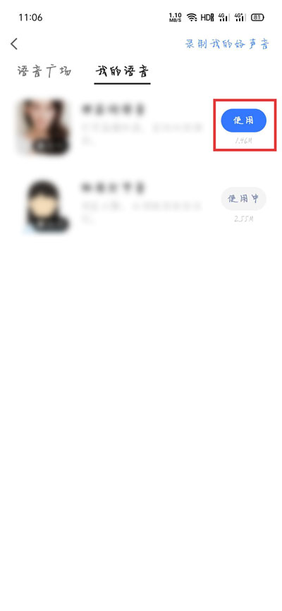 6、下载好的语音包在【我的语音】中,点击【使用】即可切换使用该语音包。