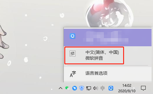 5、添加完成后,在右下角就会出现当前输入法的图标,点击可切换为微软拼音输入法;