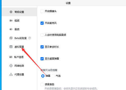 3、接着在左侧选择【虚拟背景】设置;