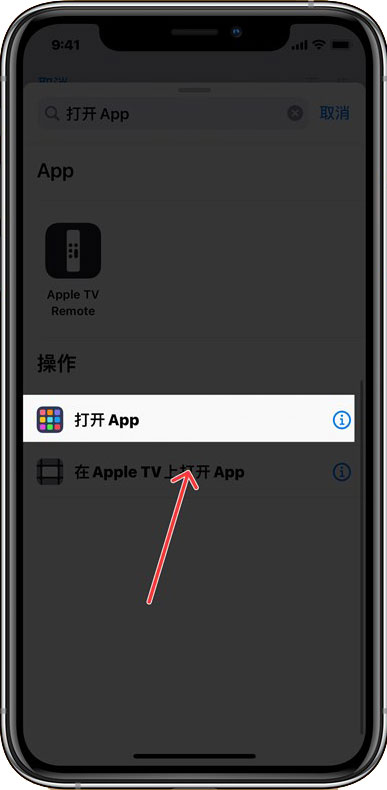 4、选择我们需要执行的操作,搜索【打开App】,在下方选择【打开App】;