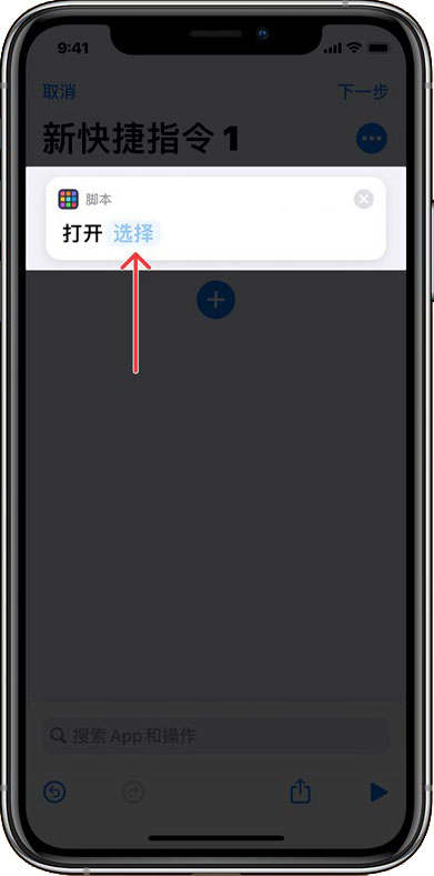 5、选择打开APP操作后,返回新建快捷指令页面,点击蓝色字体的【选择】;