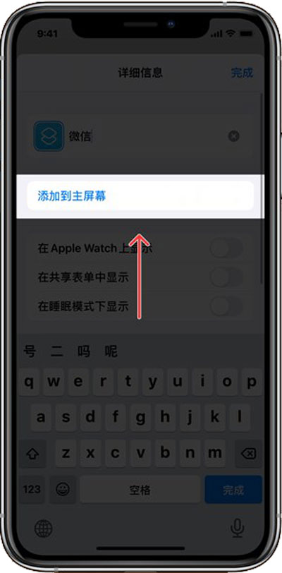8、接着在详细信息页面,选择【添加到主屏幕】;