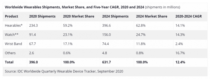 “即使供应商缩减生产,最终用户被隔离,可穿戴设备的需求仍然稳定,”IDC说。“市场受到了对可穿戴设备近乎创纪录的需求的推动。”