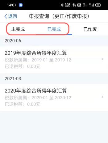 3、在【未完成/已完成】的下方,找到自己需要修改的申报信息,点击进入申报详情页面;