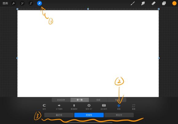 选完缩放小箭头以后,可以选下面这个②插值,会出现③的三个选框(按照步骤即可完成)。