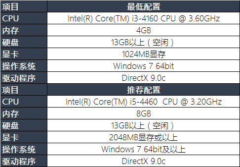 游戏所需配置
