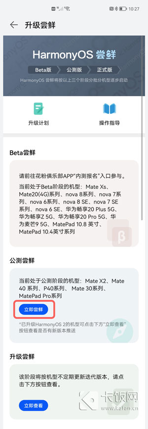 3.在升级尝鲜版本中,选择公测尝鲜的【立即尝鲜】;