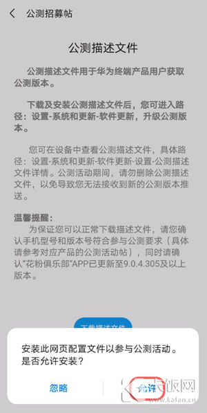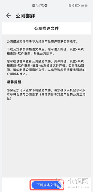 9.在公测尝鲜页面,点击【下载描述文件】;