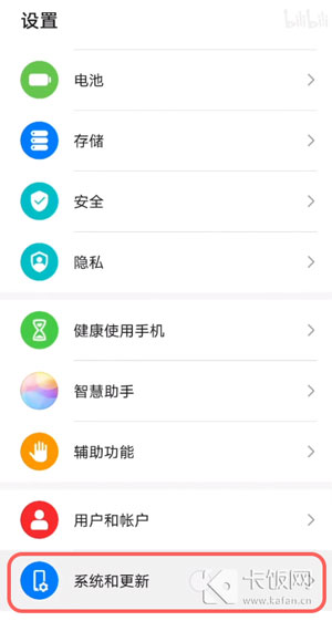 12.打开华为手机上的【设置】,找到设置中的【系统和更新】;
