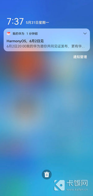 1.打开鸿蒙系统手机,在桌面、应用内的顶部右侧,按住往下拉动;