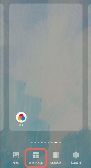 5、长按桌面上的图库卡片,按住拉动边缘进行放大、缩小等操作;