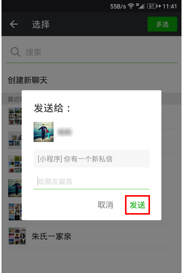 最后,选择一个你想将这条私信发送到的朋友就行了。