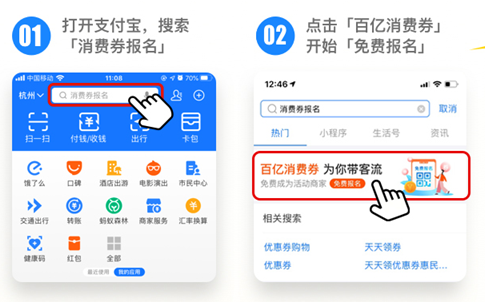 全国商家只要在支付宝搜索“消费券报名”,完成报名后即可在7月支持消费券核销。