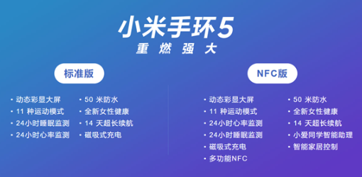小米手环5标准版和NFC版之间差了40块钱。