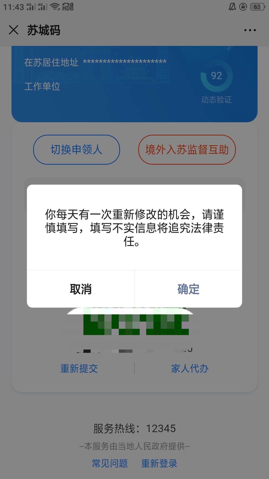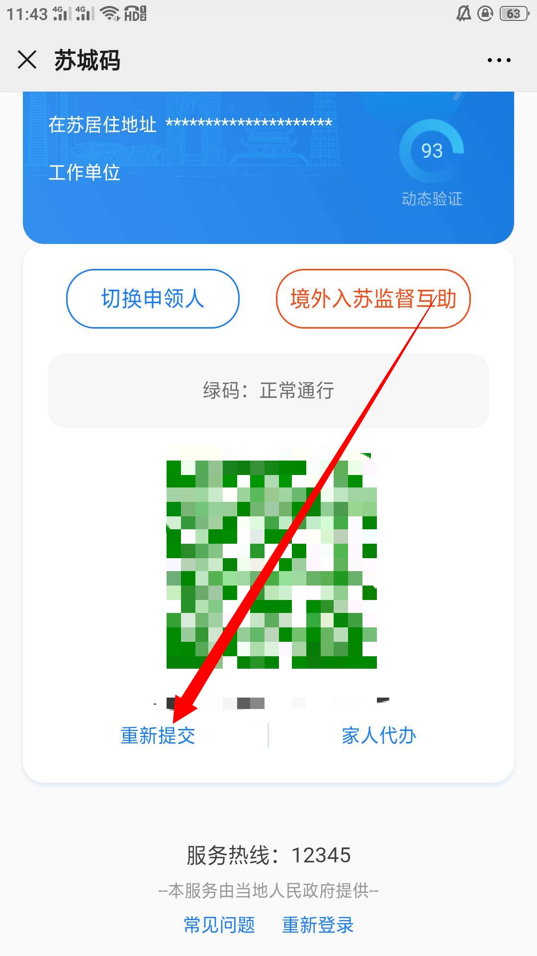 3、申请过的用户就不用填资料就可以看到自己的苏城码了。在苏城码下拉找到重新提交,点击即可。